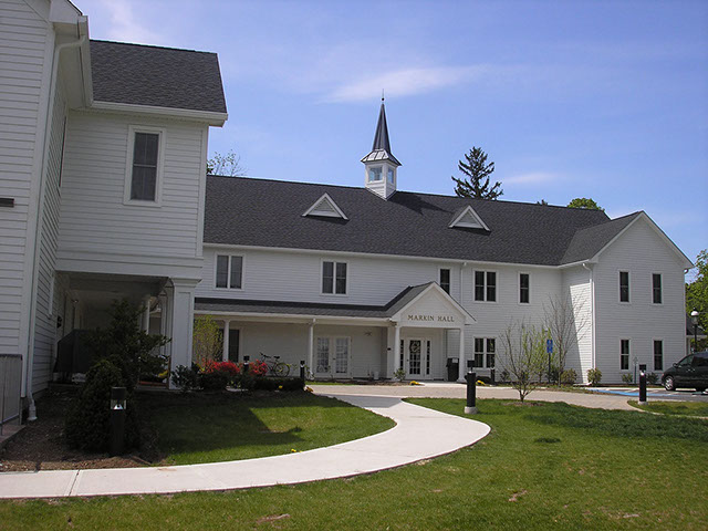 White clapboard, colonial inspired structures, the dorms feature common rooms on each floor and integrate faculty apartments to foster intimate contact between students and faculty.